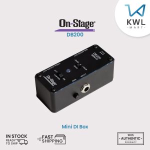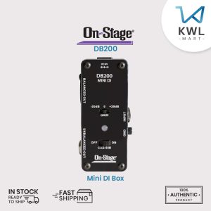 On-Stage DB200 Mini DI Box converts any high-impedance 1/4″ source to a low-impedance XLR signal ready to send via a long cable run to a mixer or PA system. A cab simulator switch enables sending the input signal through an emulated amp directly to a mixer without using a physical amp. There’s a switch for either +20 dB of gain to boost weak signals or a -20 dB pad to prevent clipping from louder sources. A ground-lift switch defeats ground-loop hum. When not using the DI, the true-bypass switch eliminates the circuitry of the pedal from the signal path. Balanced and unbalanced outputs provide the option to send the signal to an amp, a mixer, or both. This pedal includes hook-and-loop strips for convenient pedalboard mounting. Its heavy-duty metal enclosure protects the internal components and ensures reliable performance.